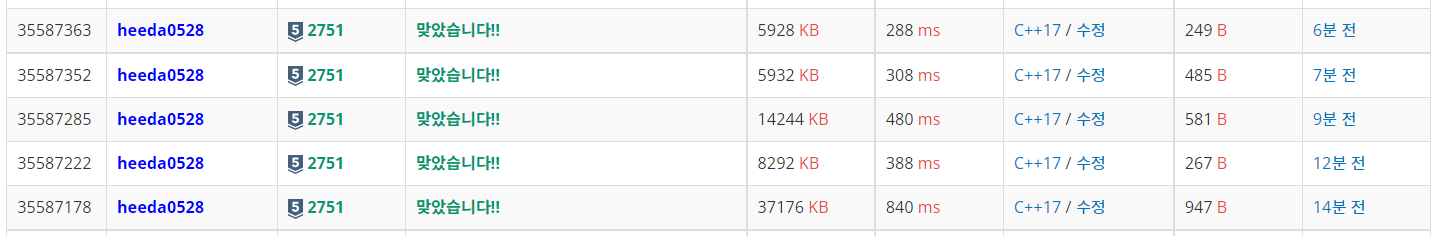 BOJ 2751에 제출해보니 메모리와 시간 면에서 그다지 효율적이지는 않아도 나름 선전하는 모습을 보여줬다.