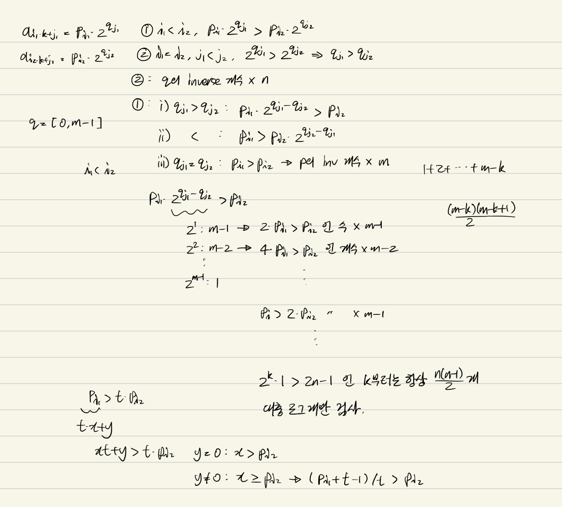 쓰기 귀찮아서 컨테 당시 필기로 대신한다. 대충 케이스 나누고 인버전 카운팅을 펜윅으로 로그 번 돌리는 풀이인데, 정해가 아닌 것 같다. 처음에 pbds로 날먹하려다가 TLE 나서 슬펐다.